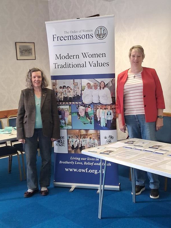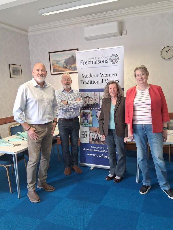 The pictures show Bro Eva Stone SW on the left and Bro Janet Sheppard JW, both of Lodge of Achievement No 126 Harrogate (OWF). Also our WM W.Bro Mick Lynch and IPM W.Bro Steve Morris. The distinguished gentleman sitting between Eva and Janet is W. Bro Maurice Bartle, honorary member of BP!
