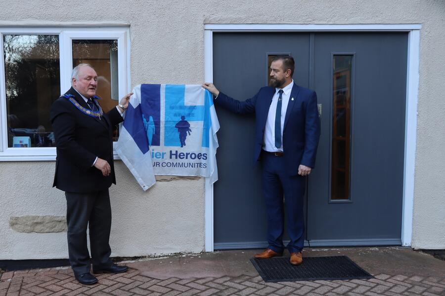 TOn the day, the sun shone and the Masonic Aware Plaque, sponsored by De Brus Lodge No. 4244, was jointly unveiled by VW Bro Bill Glanville, Deputy Provincial Grand Master and Andy Powell, Managing Director of Healthier Heroes CIC and a Master Mason.